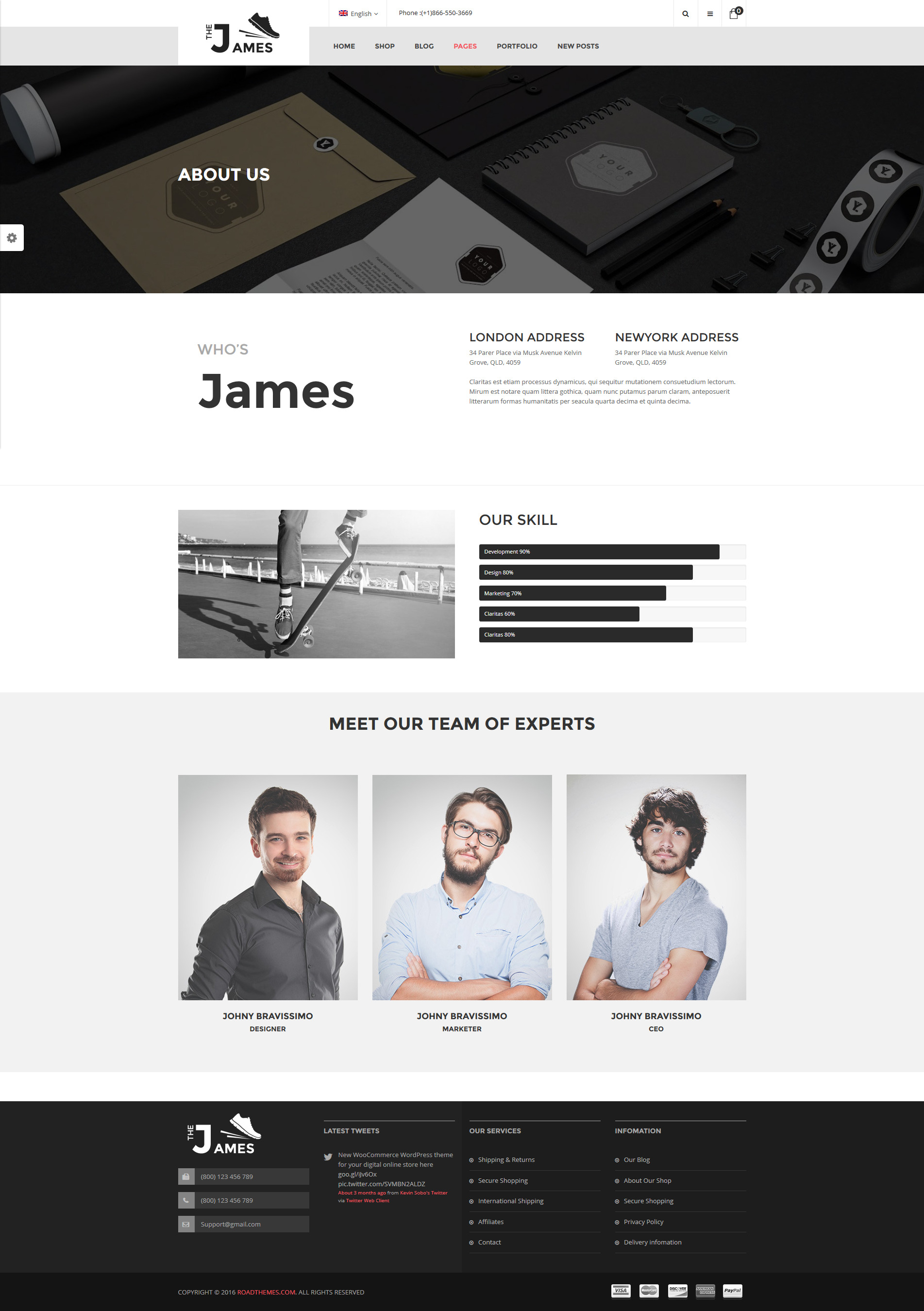 Not just support WooCommerce, James comes with exclusive designs integration. This allows you to create a professional eCommerce website in a snap.